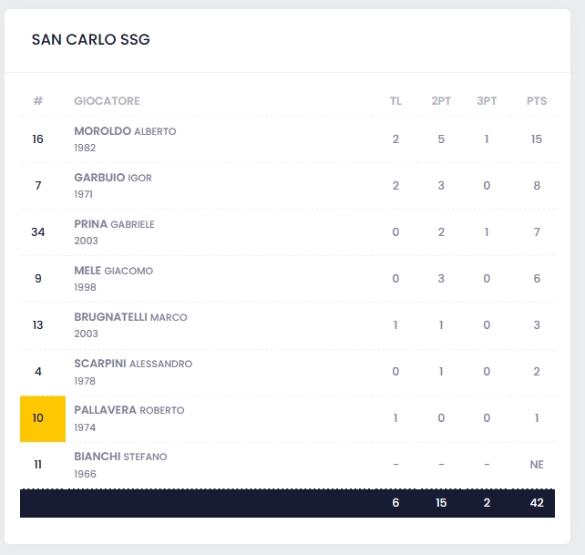 STATISTICHE EBRO BASKET vs SAN CARLO SSG 20-0
