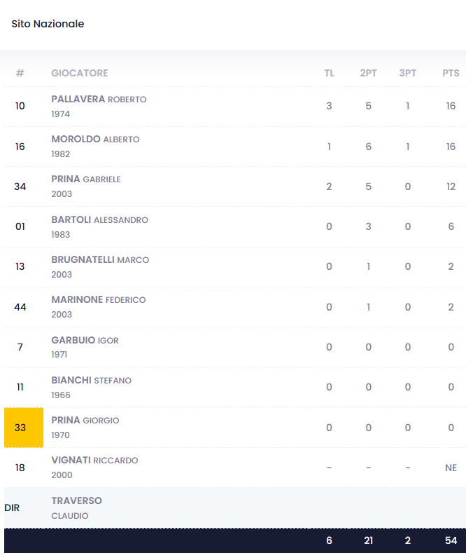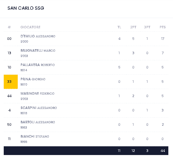 STATISTICHE SAN CARLO SSG vs UNICORN MILANO 54-51